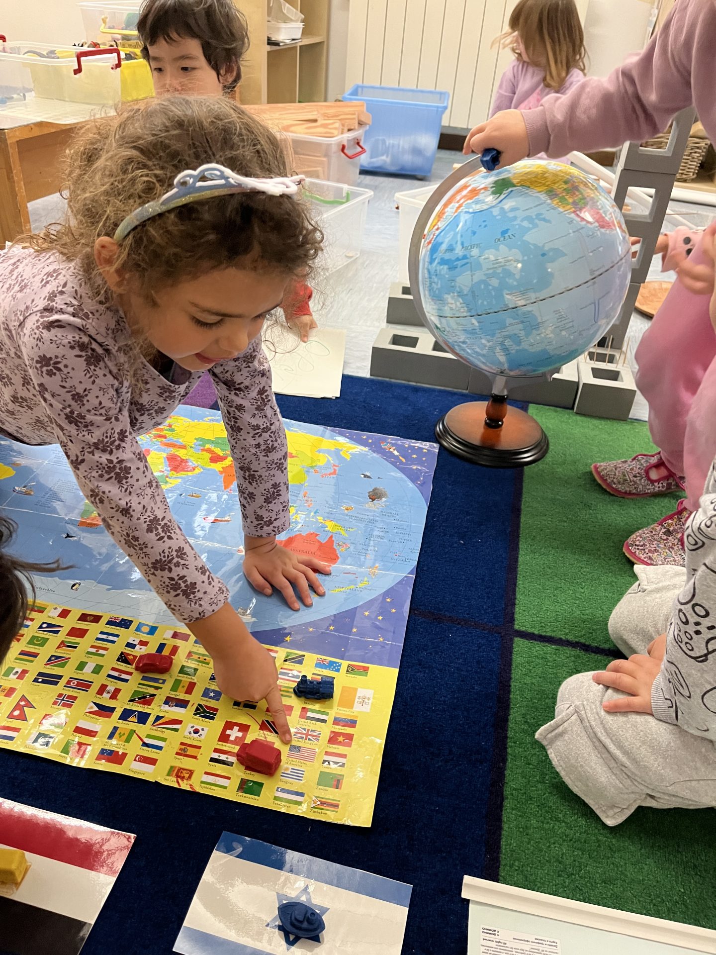 In their current unit of study, the pre-k students are exploring each of the fifteen different countries represented by the students in the class. From finding the countries on maps to “travelling” somewhere new each week via their classroom “airport”, students were using their own passports (created by the 3-4 year olds themselves and not recognized by any government), going through a “security” line in their classroom and loading up the carpet (aka the plane), to visit each other’s countries. While there, they learned about the community helpers, family life, and which things seem to be universal human experiences. Imagine their excitement when they were hosted by the airport to get as close to the real experience as possible (without actually having to say goodbye to mums and dads).