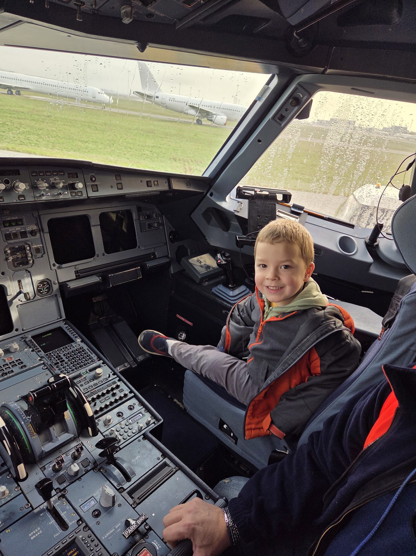 Upon arrival at the airport, the students went through their own security line, had their backpacks and stuffies scanned, boarded a transfer bus and were taken to the tarmac. Neither adults nor students knew that they were being taken to an airplane which was currently waiting to join a fleet. As they boarded the plane and found their seats, every student got an opportunity to “be the pilot” and ground control even turned on the instrument panel which lit up, and on which, the “pilots” could see their classmate “passengers” buckled up in the plane.